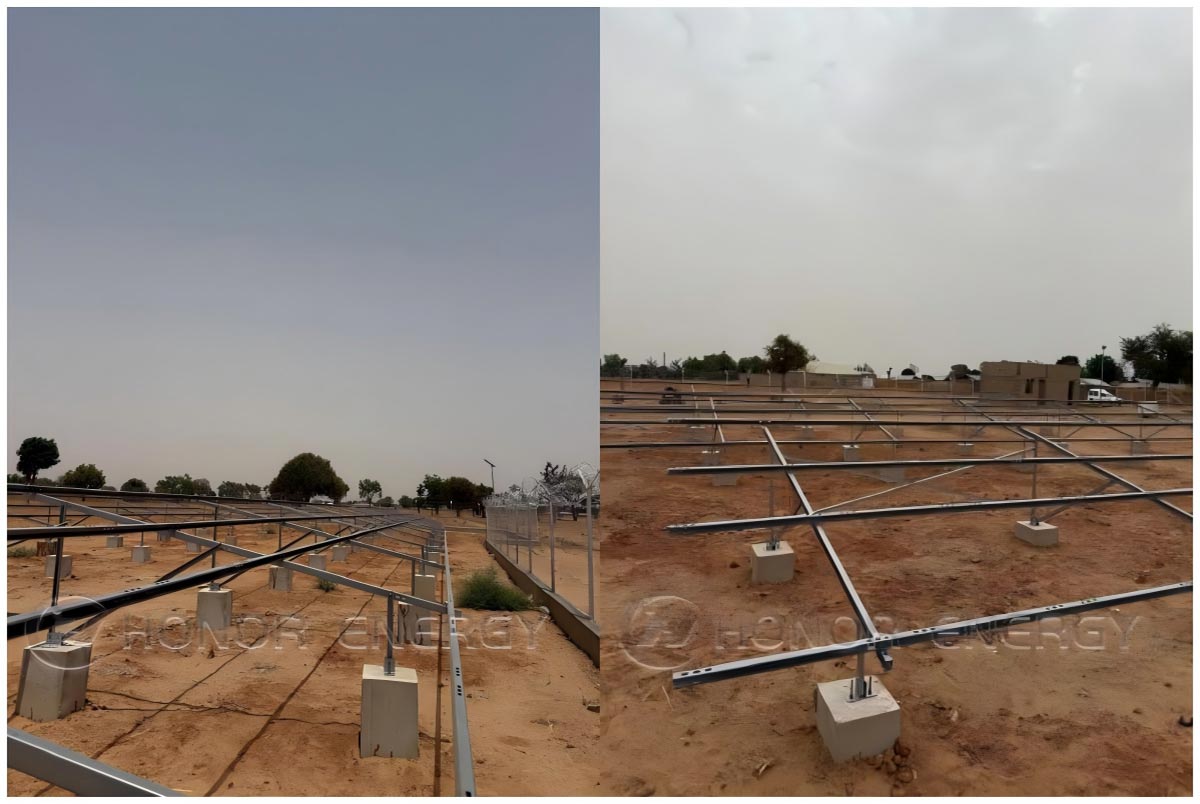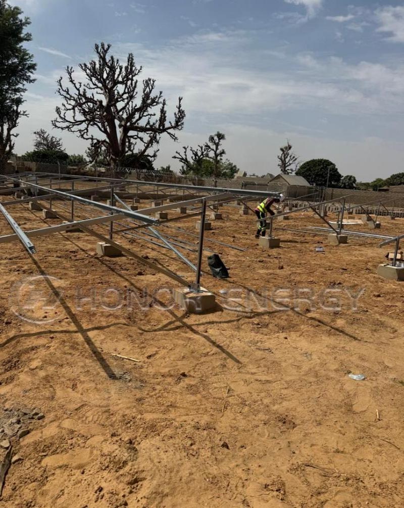 Под палящим африканским солнцем над землей Нигерии поднимается стойкий «стальной лес». Это больше, чем просто строительствоФотоэлектрическая электростанция; это твердая приверженность экологически чистой энергии и технологической практике, специально разработанной для тропического климата. Следите за нашим объективом и станьте свидетелем установки наземной солнечной электростанции мощностью 1,7 МВт!